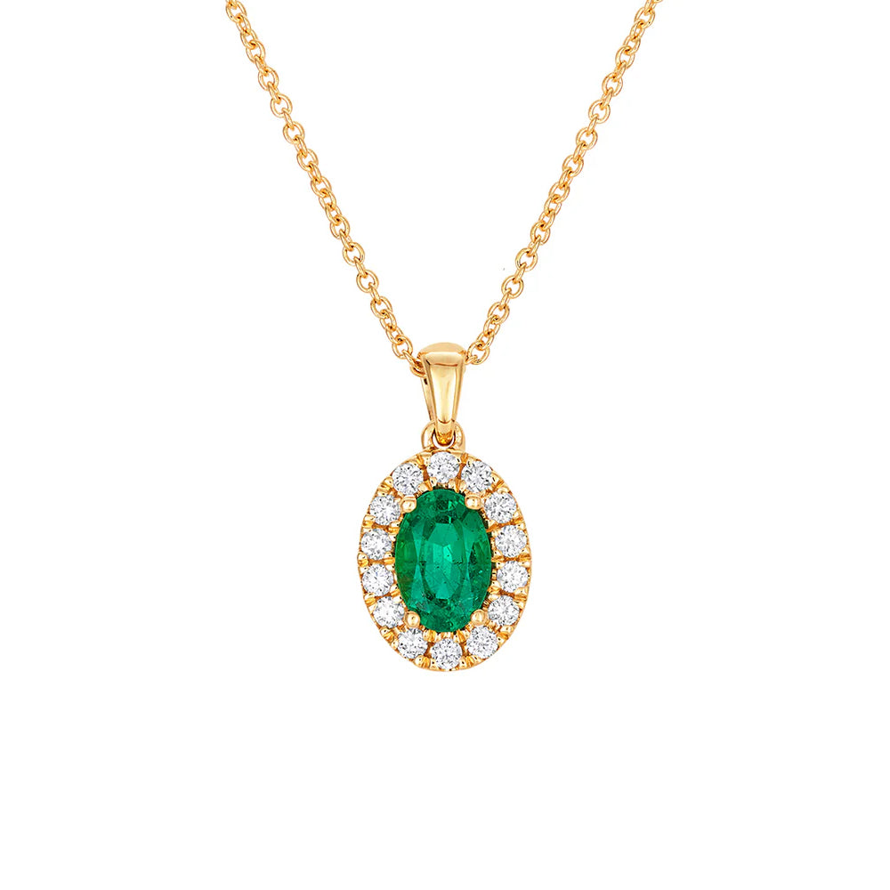 Emerald and Diamond 18ct Yellow Gold Oval Cluster Necklace