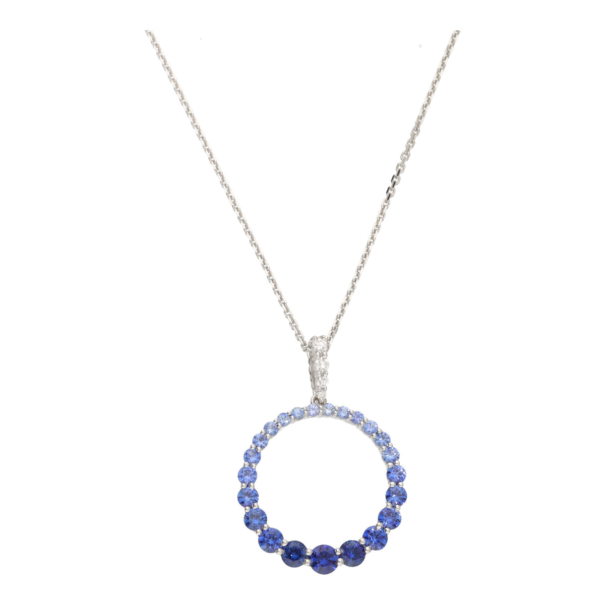 Sapphire and Diamond Graduated 18ct White Gold Open Circle Necklace