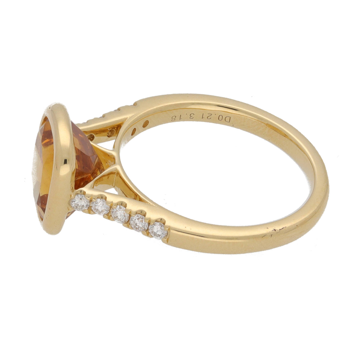 Citrine and Diamond 18ct Yellow Gold Collar Set Ring