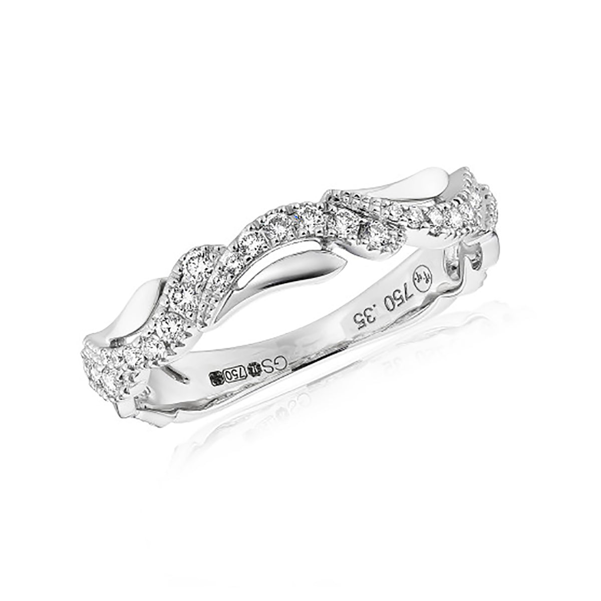 Diamond 18ct White Gold Leaf Twine Ring