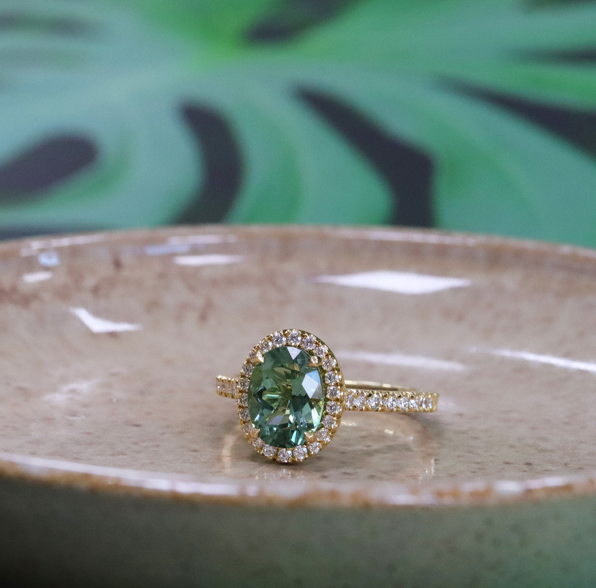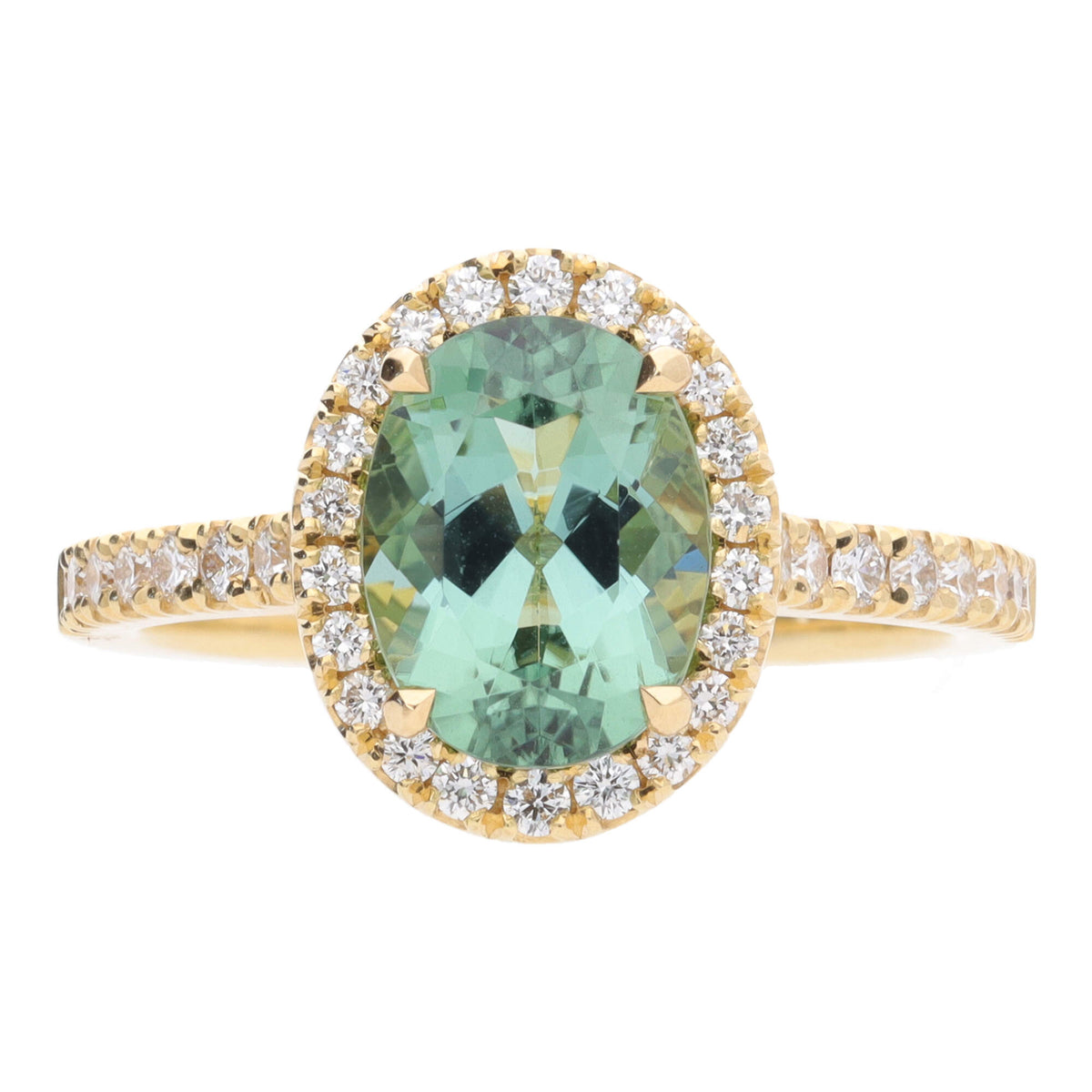 Montana Castel Green Tourmaline and Diamond 18ct Yellow Gold Oval Cluster Ring