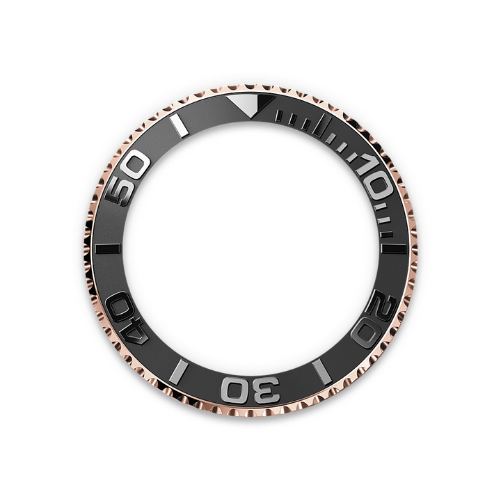 Bidirectional rotatable 60-minute graduated bezel with matt black Cerachrom insert in ceramic, polished raised numerals and graduations