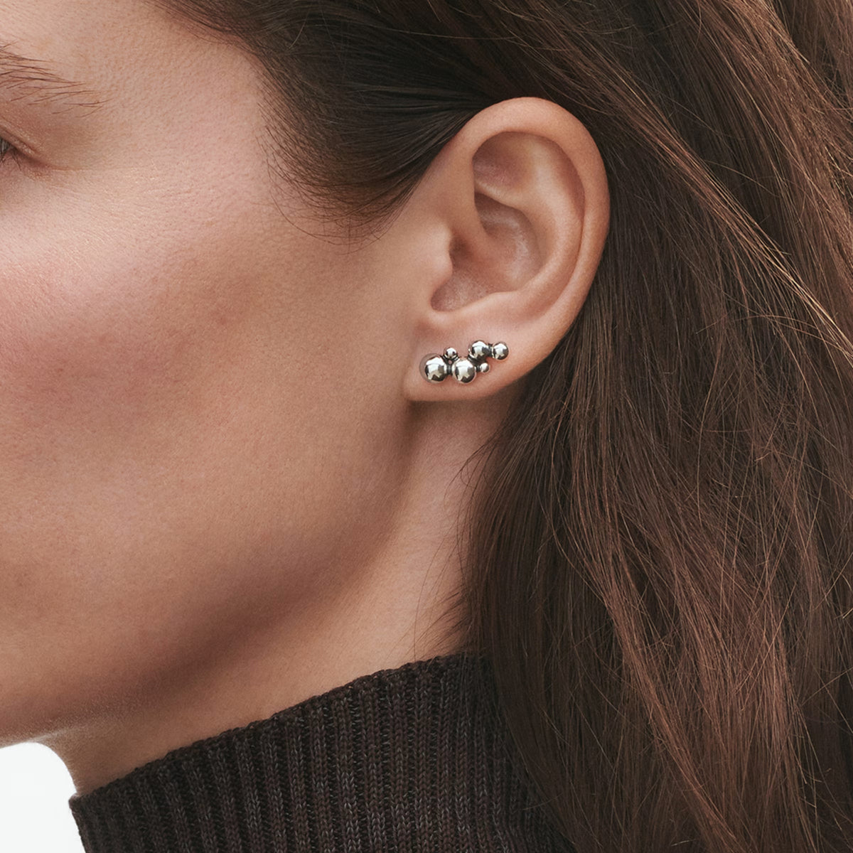 Composed of a tight cluster of sterling silver beads, these ear cuff playfully reinterpret Georg Jensen’s early Art Nouveau grape motif in a contemporary way. An oxidised finish lends a sense of depth and contrast to the piece, which features a wire fastening and can be worn on its own or as a pair. 8x17mm