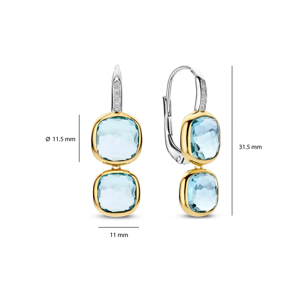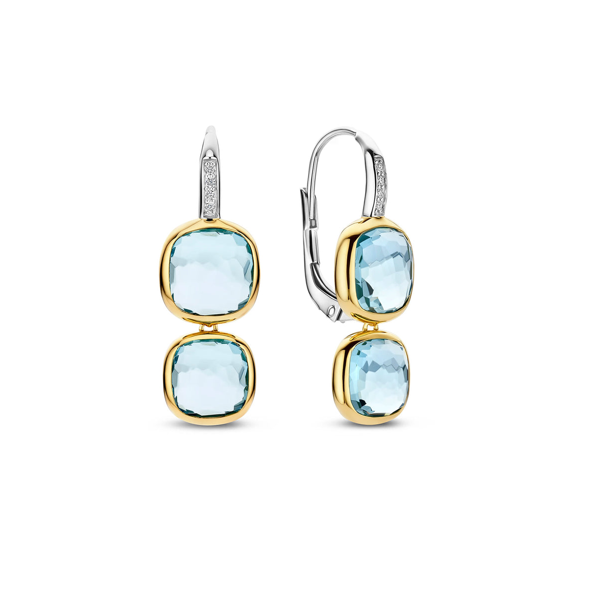 Ti Sento Yellow Gold Plated Light Blue Crystal and Cubic Zirconia Double Cushion Drop Earrings 78054TY