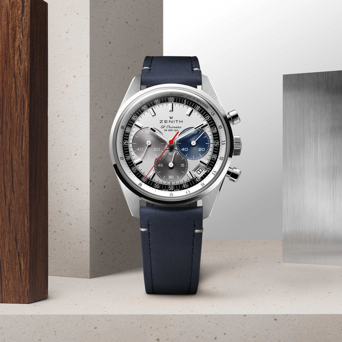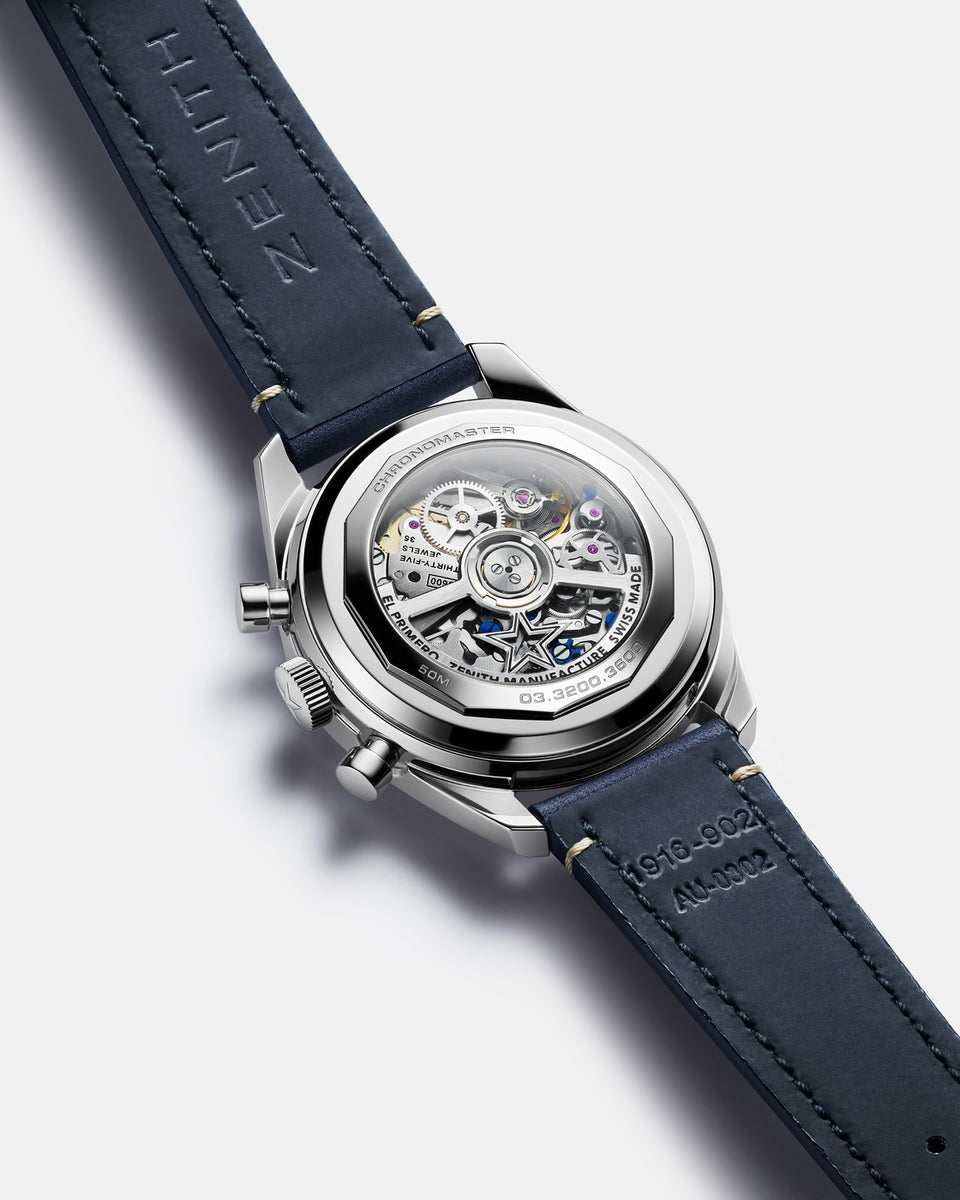 Powered by the El Primero 3600 automatic high-frequency chronograph movement with 1/10th of a second chronograph function and a power reserve of 60 hours.