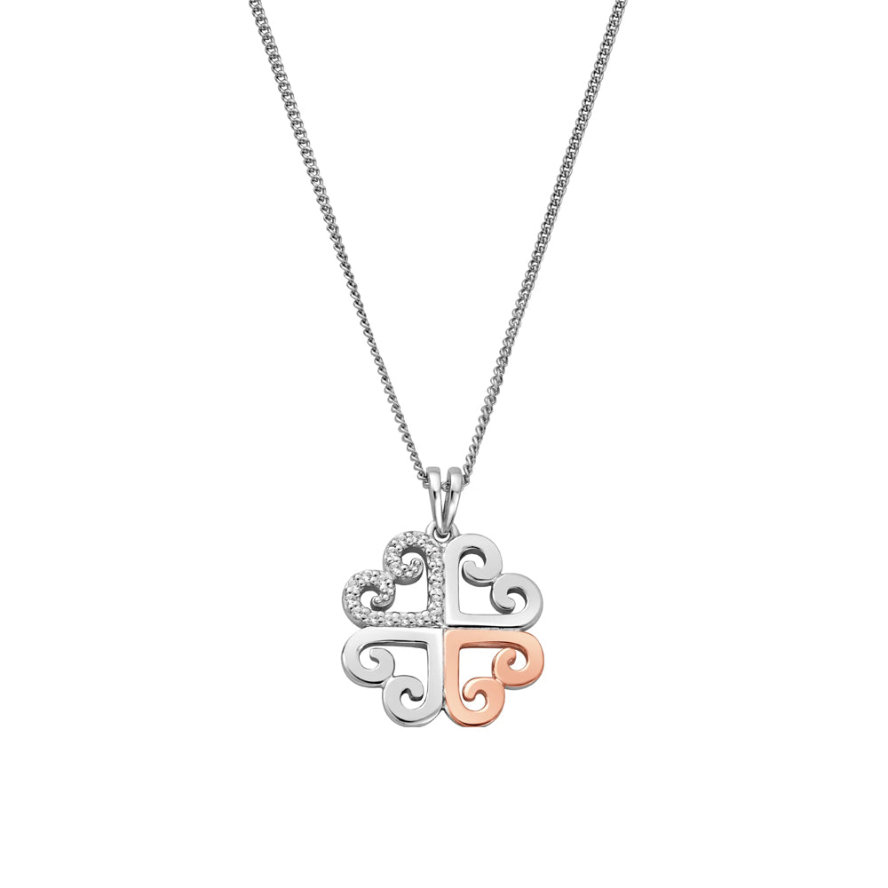 The exquisite Hearts Embrace Silver and Swarovski Topaz Pendant is inspired by love and all that encompasses, symbolising hearts coming together on an everlasting romantic journey. Sublime sterling silver and 9ct rose gold is set with sparkling Swarovski white topaz. The use of the exclusive "Made with Swarovski Gemstones" tag serves as your assurance that you are acquiring a product set with genuine gemstones of the highest precision and brilliance, cut by Swarovski.