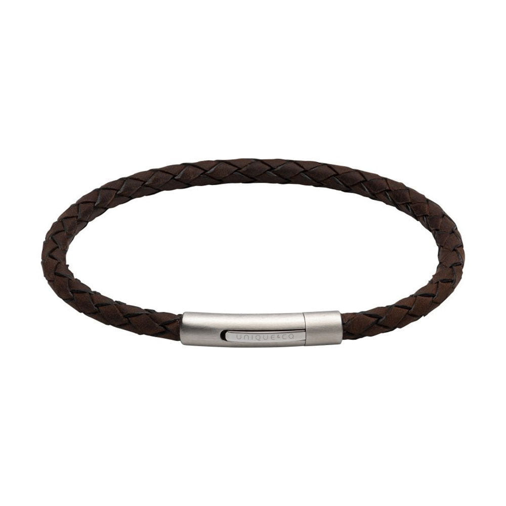 Unique & Co Matte Dark Brown Leather Bracelet With Stainless Steel Clasp 21cm