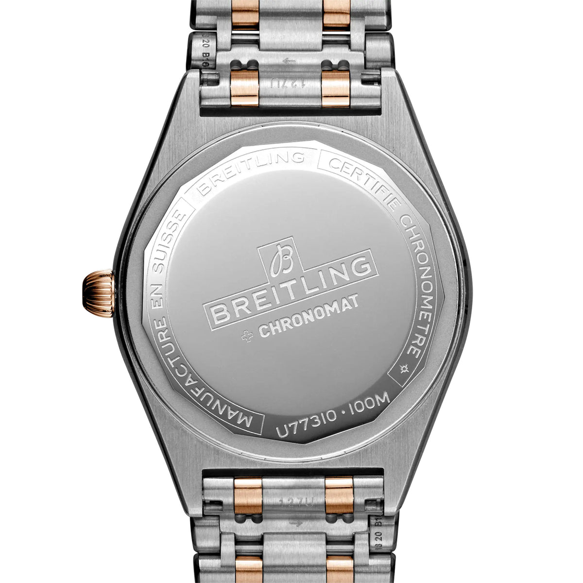 Stylish yet elegant, the modern-retro inspired Chronomat 32 is the versatile sporty and chic watch for any occasion. It is available in an array of metal cases, from cool stainless steel, to goes-with-everything bicolour, or even luxurious 18ct red gold. Women craving extra sparkle will also be able to opt for diamond-set bezels, indices, and colorful dials. Featuring Breitling’s iconic and comfortable “Rouleaux” bracelet with a butterfly clasp, the Chronomat 32 is powered by the Breitling Calibre 77, a COSC-certified SuperQuartz™ chronometer.