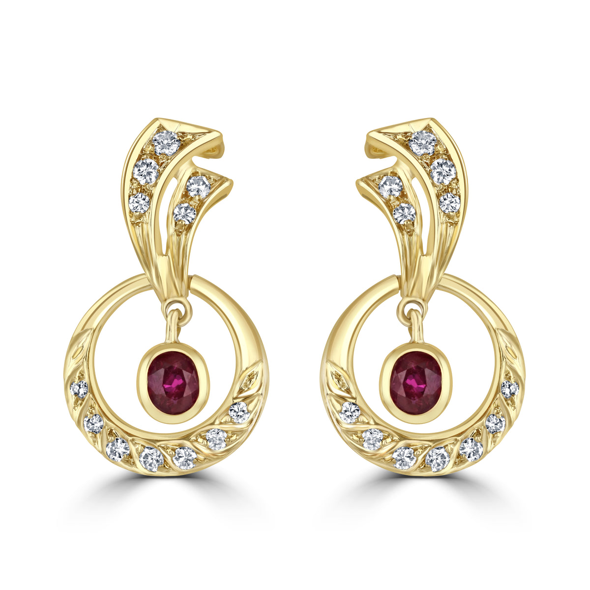Pre-owned Ruby and Diamond Yellow Gold Circle Drop Earrings