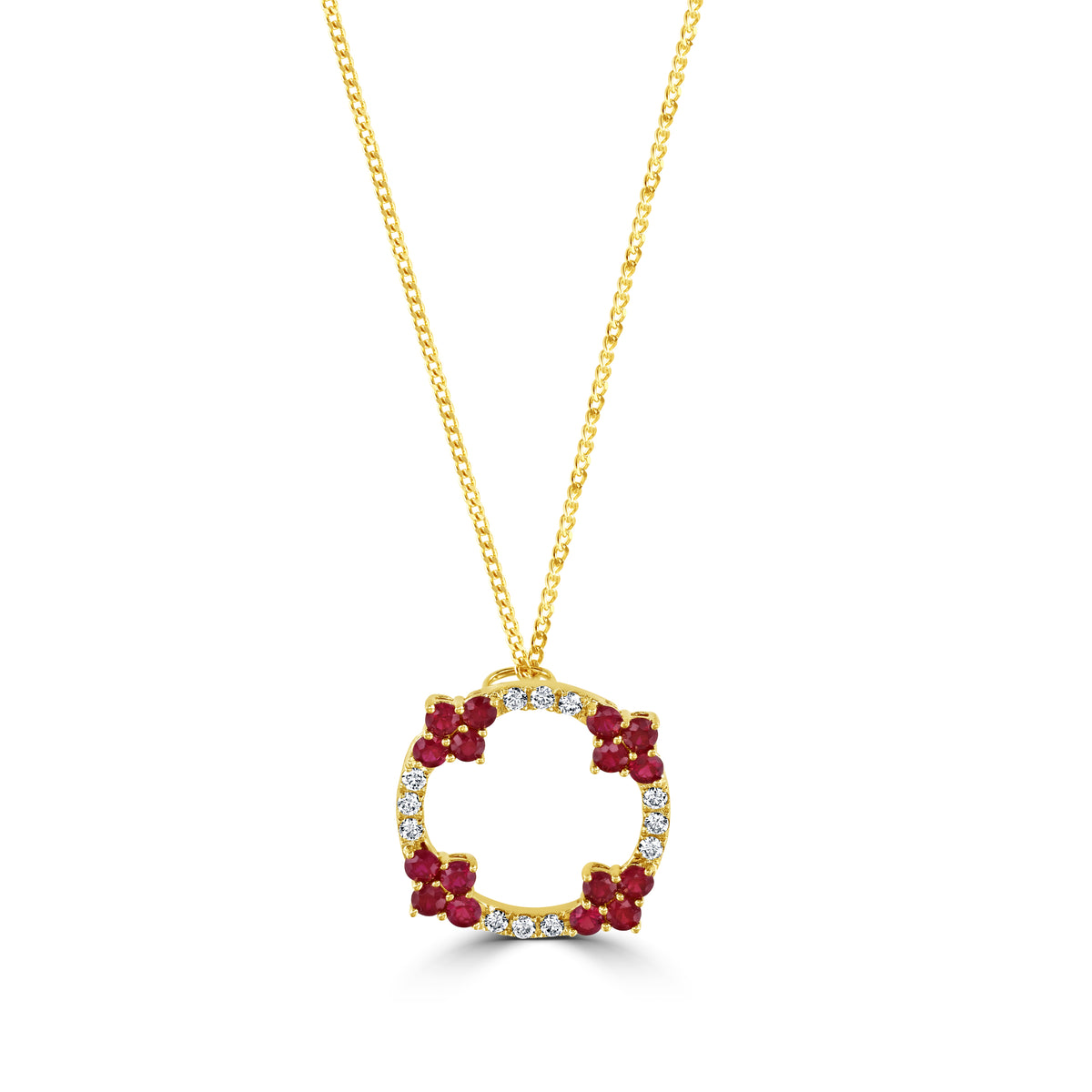 Ruby and Diamond 18ct Yellow Gold Circle Pendant