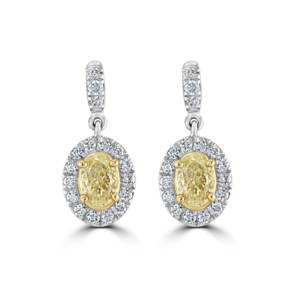 Skye Oval Fancy Yellow and White Diamond Platinum Cluster Drop Earrings